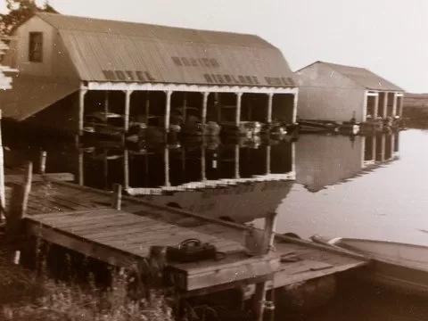 In 1953 Ed bought the farm from his father and built cabins while he continued to run the flight school. But by 1958 it was apparent to him that the 1000 Islands were becoming world renowned as a premier boating destination and the area lacked boat dockage and storage. After long contemplating the marina business, Brome Folks and Jack Barrett came up to him and asked if he would build a boat house for them to use.